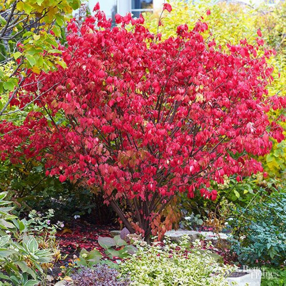 Добавьте в свой сад нотку изысканности и яркости с саженцем Бересклета Европейского 'Шервудский'.