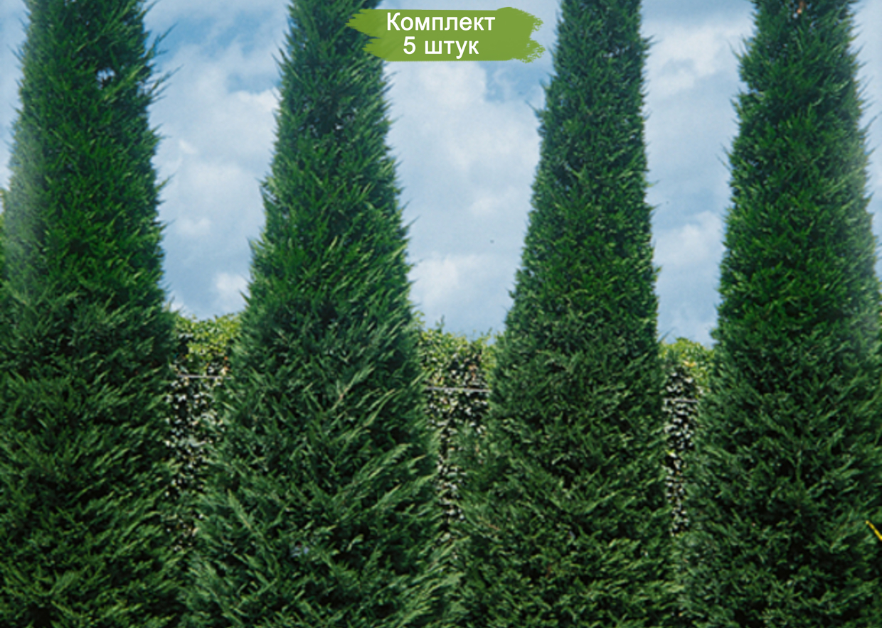 Приобретите комплект из 5 саженцев кипарисовика Лейланда (Cupressocyparis leylandii) и создайте в своем саду живописную живую изгородь или уютные зеленые уголки. Эти быстрорастущие хвойные растения достигают в высоту 100-150 см, что делает их идеальным выбором для мгновенного ландшафтного эффекта.