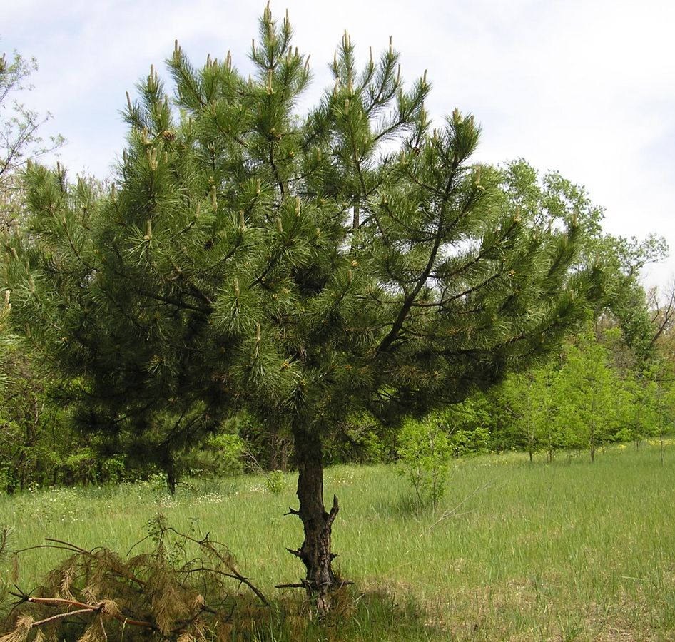 Крымская сосна - вечнозелёное дерево, которое может достигать в высоту до 30-50 метров. Имеет плотную крону и темно-зеленые игольчатые листья, длиной 10-20 см. Шишки у этого вида сосны крупные, длиной 5-10 см. Саженцы в возрасте 40-60 см уже сформировали хорошую корневую систему и готовы к пересадке на постоянное место.